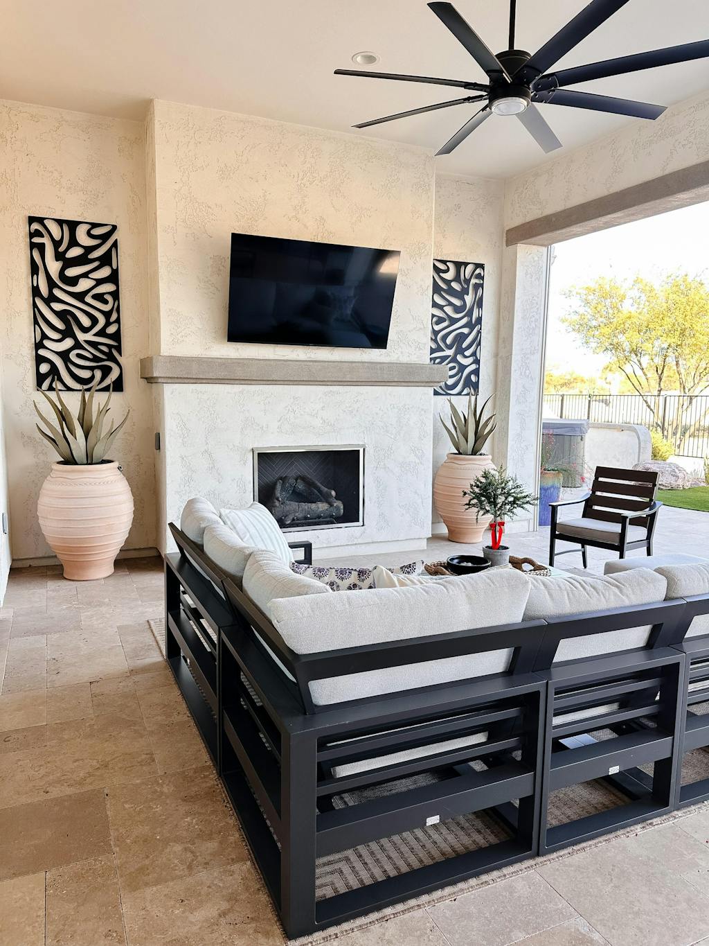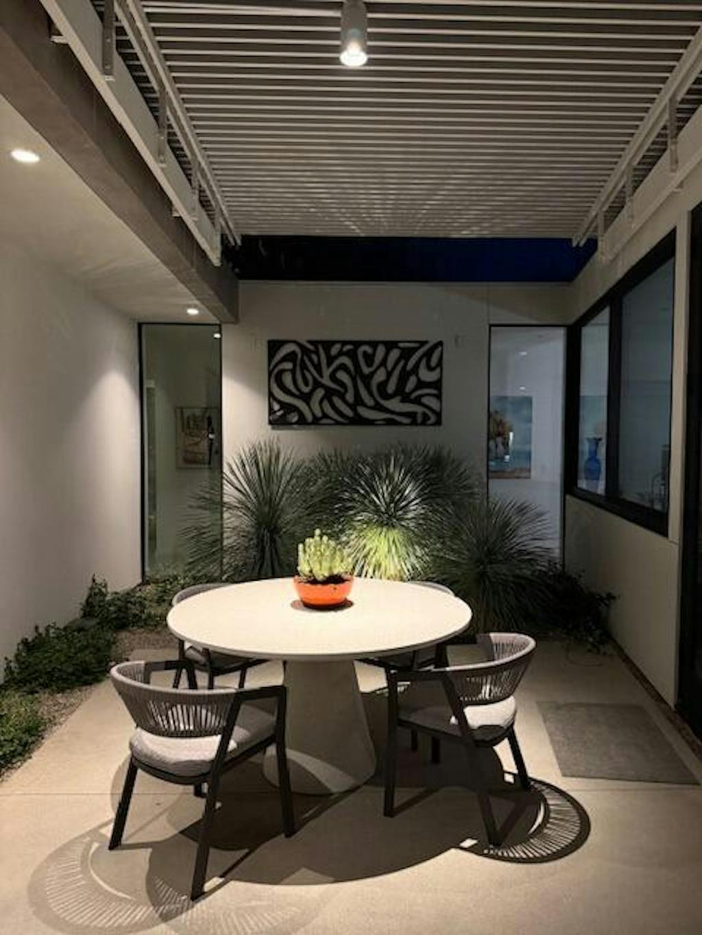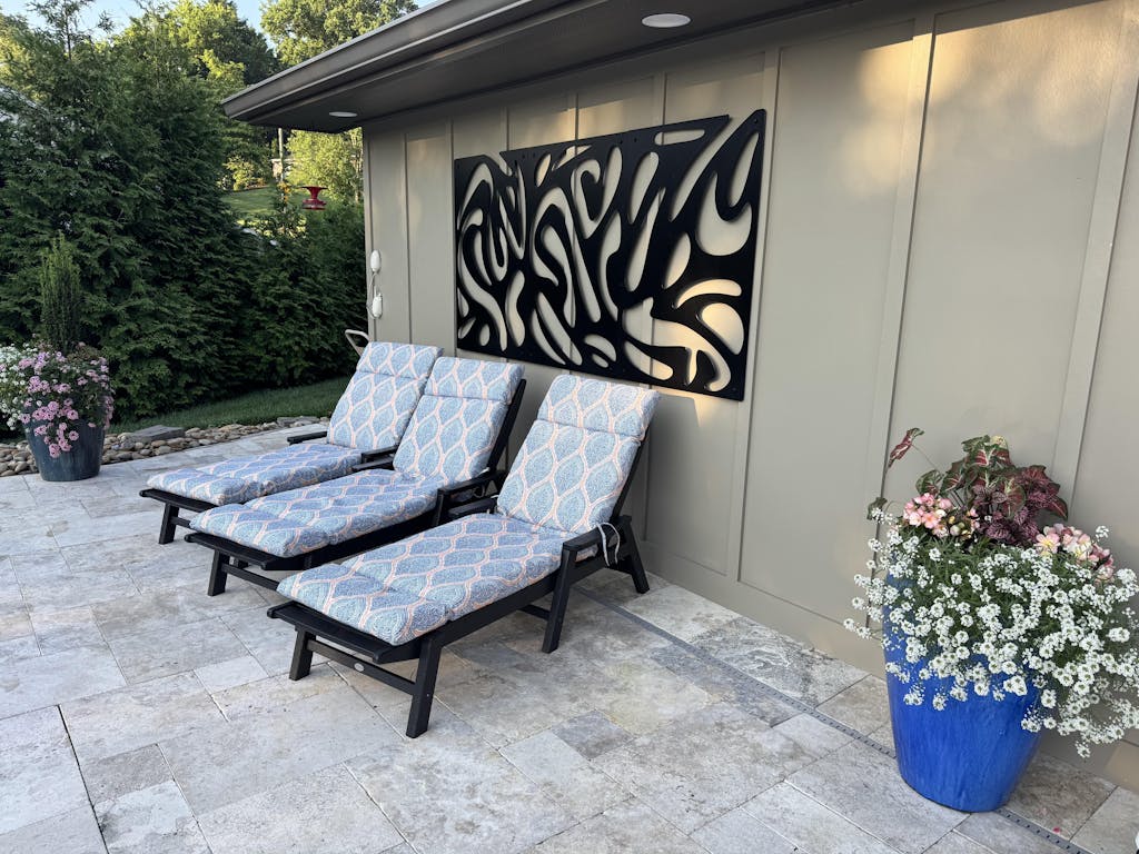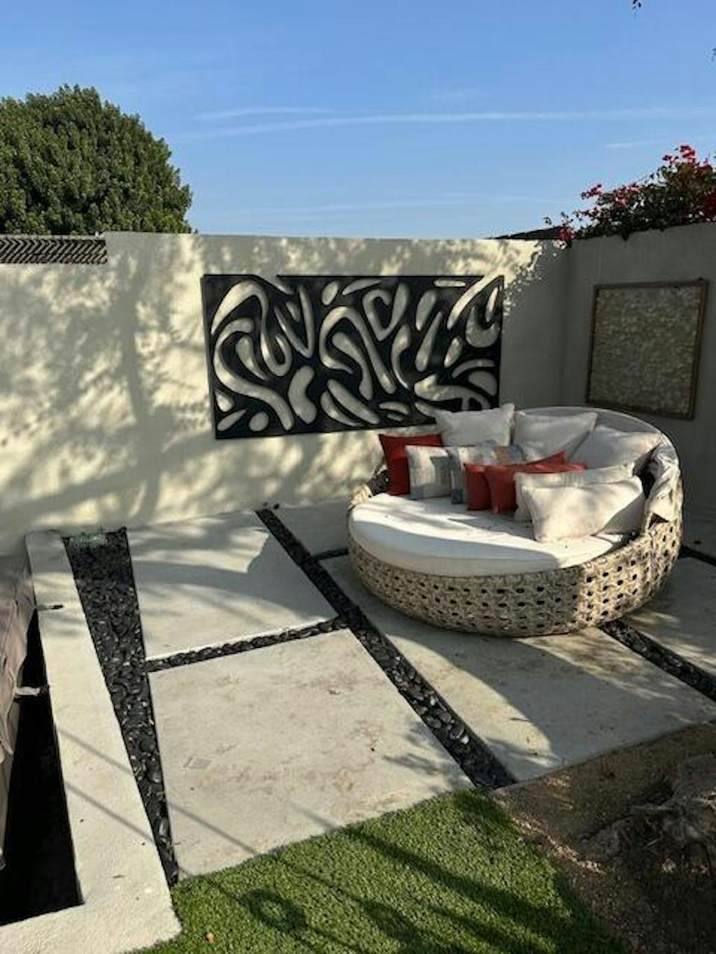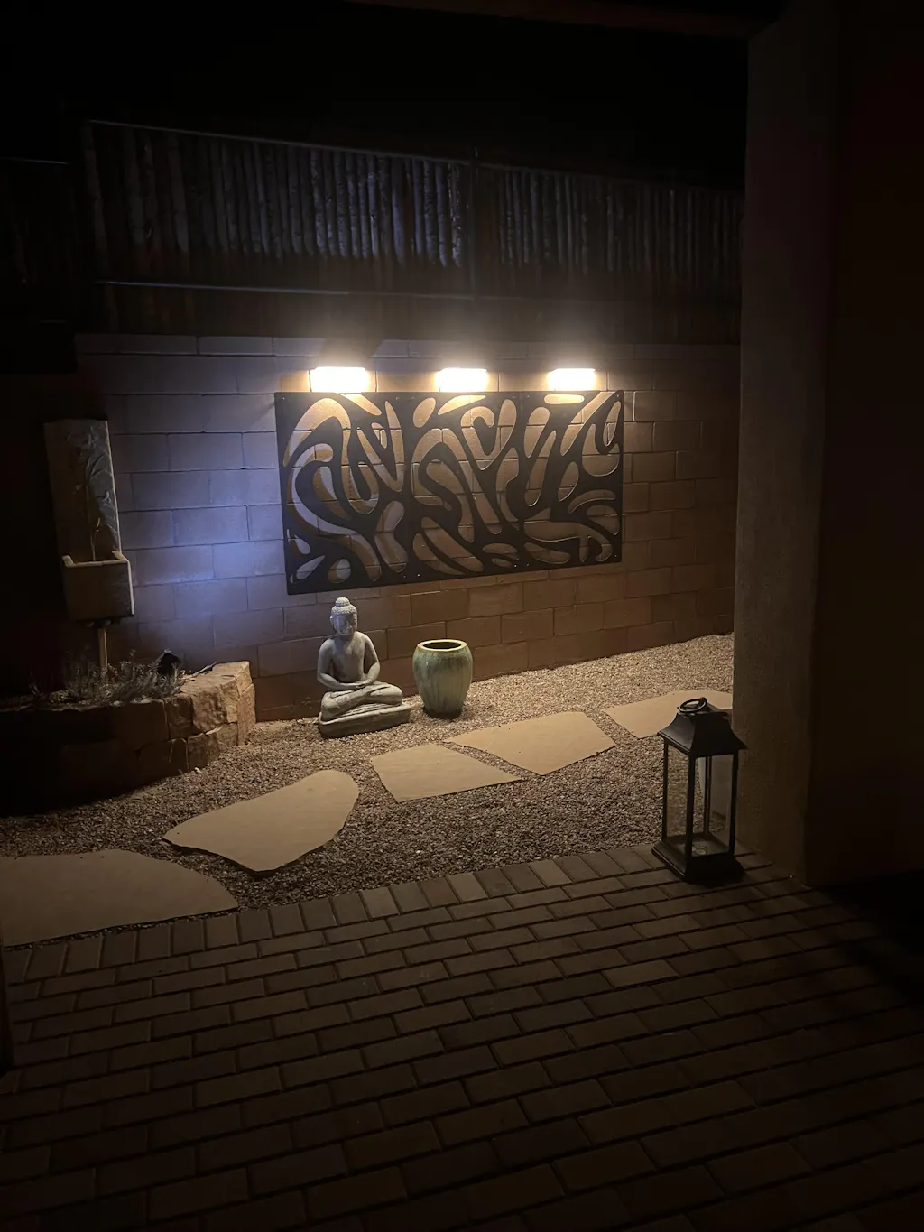 Als letzten Schliff haben wir es so konzipiert, dass es etwa 2,5 cm von der Wand absteht. Dies erzeugt interessante Schatten, die sich im Laufe des Tages verändern und Ihrem Außenbereich eine zusätzliche visuelle Dimension verleihen.